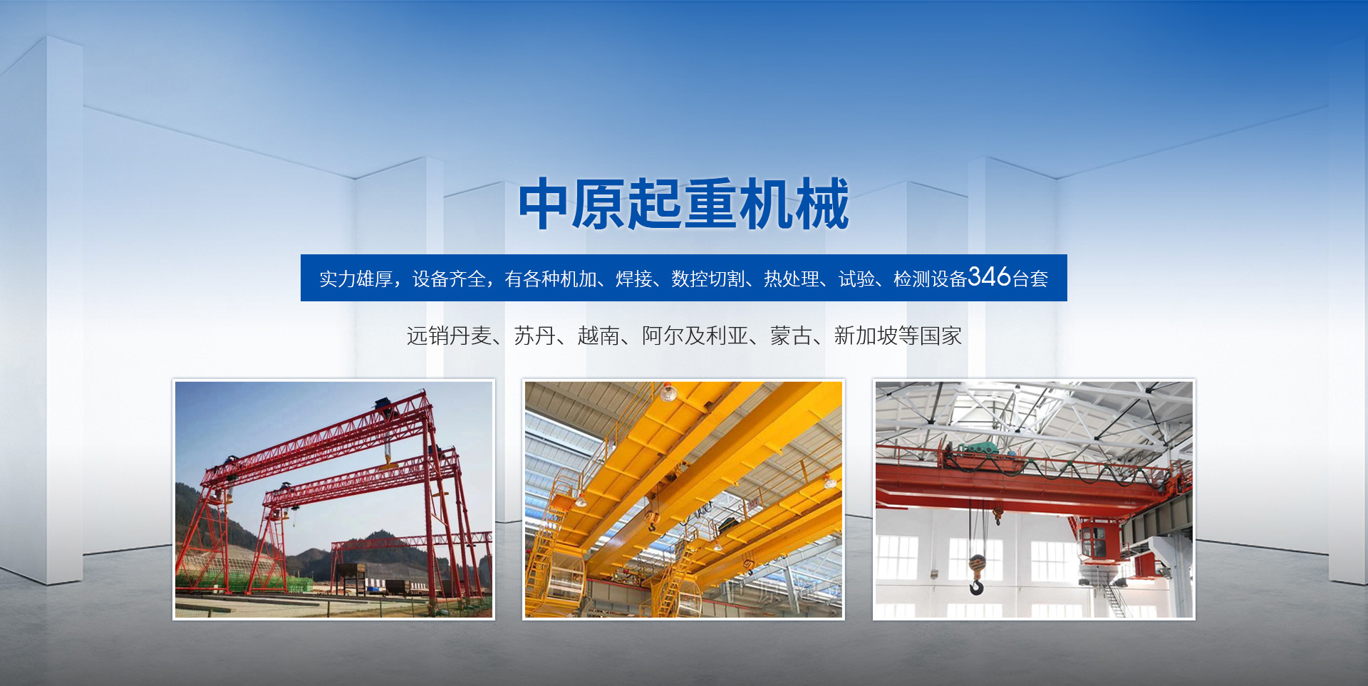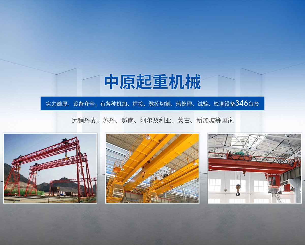 新鄉市中原起重機械有限公司成立于2000年,地處中原,輻射全國28個省市自治區(qū),設外埠經銷處、辦事處268個。產品行銷工礦、建材、化工、冶金、電力、交通、鐵路、油田、港口等各個行業(yè)。遠銷丹麥、蘇丹、越南、阿爾及利亞、蒙古、新加坡等國家。  公司實力雄厚,設備齊全,有各種機加、焊接、數控切割、熱處理、試驗、檢測設備7臺;有機加工、熱處理、單、雙梁橋門機生產、檢測、安裝等9個車間,研究中心、運輸公司、安裝維修服務公司等機構,?  主要產品有:LD型1~20噸電動單梁起重機系列產品;5~600噸通用橋式、門式、冶金、上旋轉下旋轉電磁吊、絕緣、抓斗、防爆起重機系列產品;LH3~100噸葫蘆雙梁系列產品;MH5~32噸葫蘆門式系列產品;0.5~40噸CD1、MD1鋼絲繩電葫蘆系列產品;HS1型0.5~20噸手動葫蘆系列產品;0.5~10噸環(huán)鏈電動葫蘆系列;0.5~40噸彎道電動葫蘆系列產品;裝卸橋、造船門機、架橋機、鑄造吊和水電大噸位起重機系列產品。  公司建立了強有力的質量保證體系和生產過程的質量控制系統,嚴格執(zhí)行國家設計、生產標準,有嚴格的生產工藝過程和標準,嚴格的檢驗、檢測標準和手段。